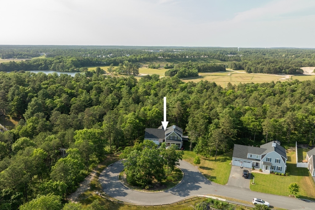 OH CANCELLED - OFFER ACCEPTED!!! Peaceful wooded setting w privacy galore is this stunning Campbell/Smith of Duxbury custom-design 3 bedroom, 2.5 bath Farmhouse (plus loft) featuring a 1st floor primary suite w tray ceiling, designer closets, walk-in tiled shower & soaking tub. Set at the end of a cul-de-sac in the extremely impressive Deer Pond Village, one of Plymouth's newer premier neighborhoods of just 39 custom-built homes with golf, restaurants and YMCA nearby. This home (filled w upgrades) is sure to please even the most discerning of Buyer w its great open floor plan and hardwood flooring throughout (except two bedrooms with wall-to-wall), SS Bosch applianced kitchen w custom cabinets, stunning granite island & countertops w tiled backsplash, under-mount lighting, gas cooktop w hood, wall oven & microwave, bar cabinet w beverage center & dining area leading to the ever-inviting oversized patio with 8-person Master's Spa HOT TUB overlooking the beautiful & tranquil backyard